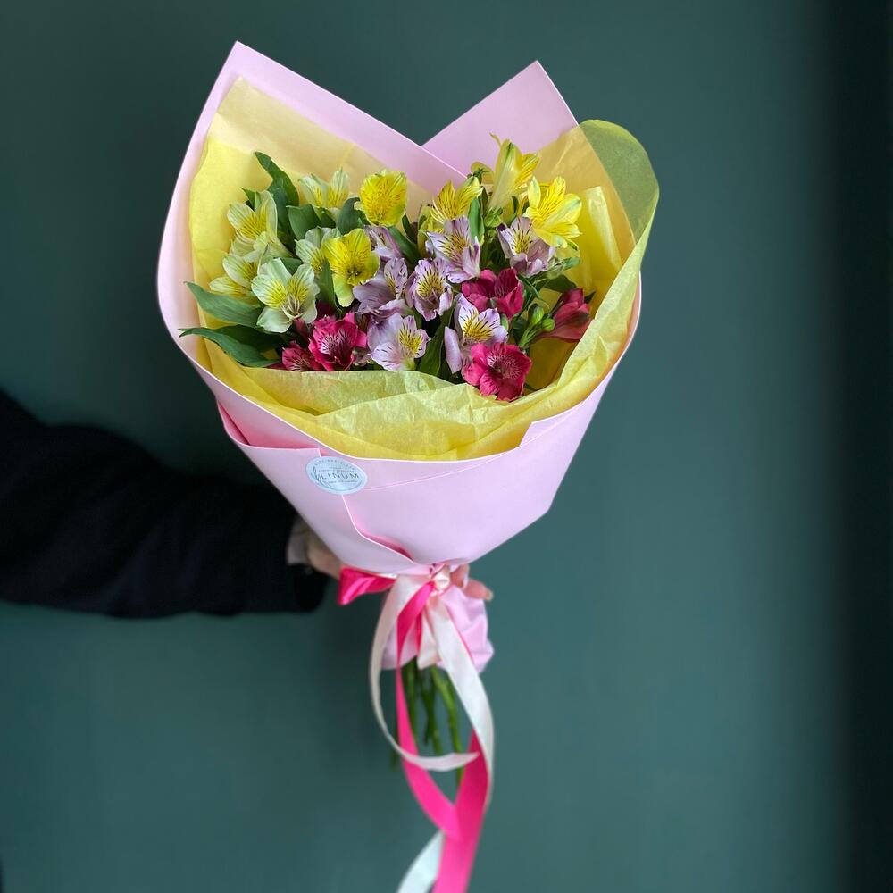 Альстромерия – 7 шт.Упаковка дизайнерская – 1 шт.Открыточка с вашими пожеланиями – 1 шт.уходовое средство для цветов – 1 шт.транспортировочная упаковка – 1 шт.