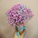 “Сиреневый туман” – композиция из гипсофилы в шляпной коробке