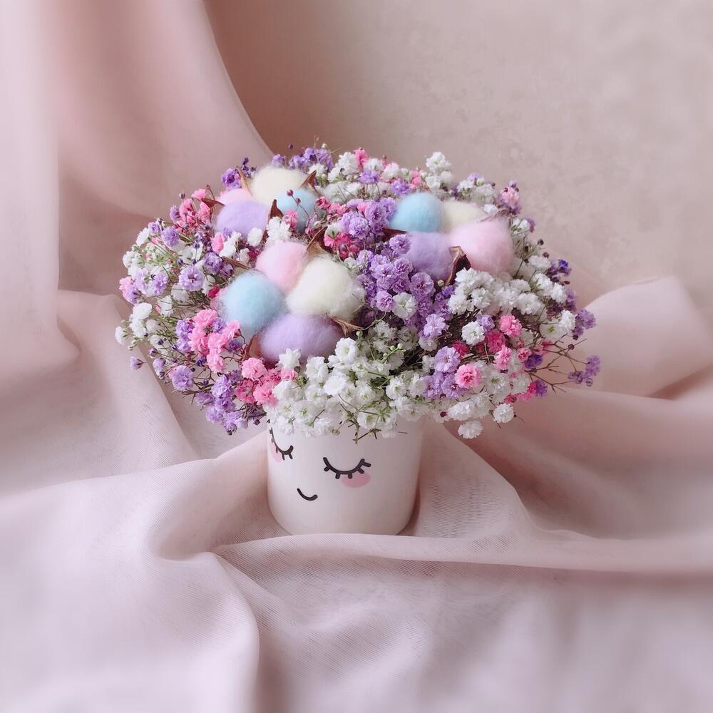 Очаровательная композиция из изысканных свежих цветов.Наполнена множеством соцветий радужной гипсофилы с разноцветным хлопком. Собрана в милом кашпо из керамикиКомпозиция из гипсофилы – необычный подарок, который удивит своей невероятной стойкостью, при правильном и простом уходе. ❤ Ставить композицию в прохладном месте, избегая отопительных приборов и прямых солнечных лучей. ❤ Подливать немного воды в серединку. Гипсофила не вянет, а становится сухоцветом, сохраняя свой вид. Поэтому композиция продолжит радовать ещё очень долго! Почему выбирают нас? – Работаем на качество. – Бережно упакуем в транспортировочную пленку, чтобы защитить во время доставки от любых погодных условий. – Приложим инструкцию, как правильно ухаживать за цветамиСохраняйте товар в подборках, чтобы не потерять