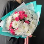 Хризантема кустовая – 3 шт.Упаковка – 1 шт.Роза кустовая розовая – 3 шт.