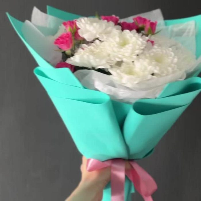 Хризантема кустовая – 3 шт.Упаковка – 1 шт.Роза кустовая розовая – 3 шт.
