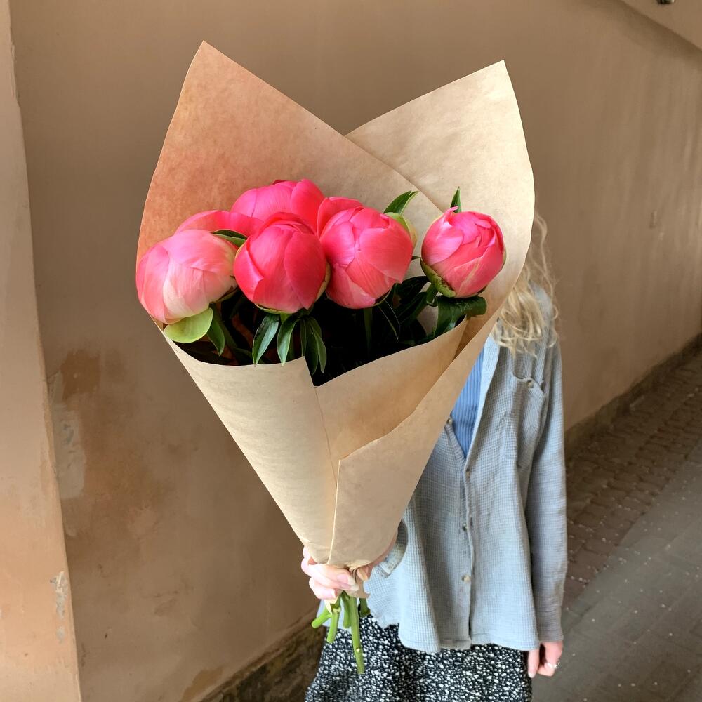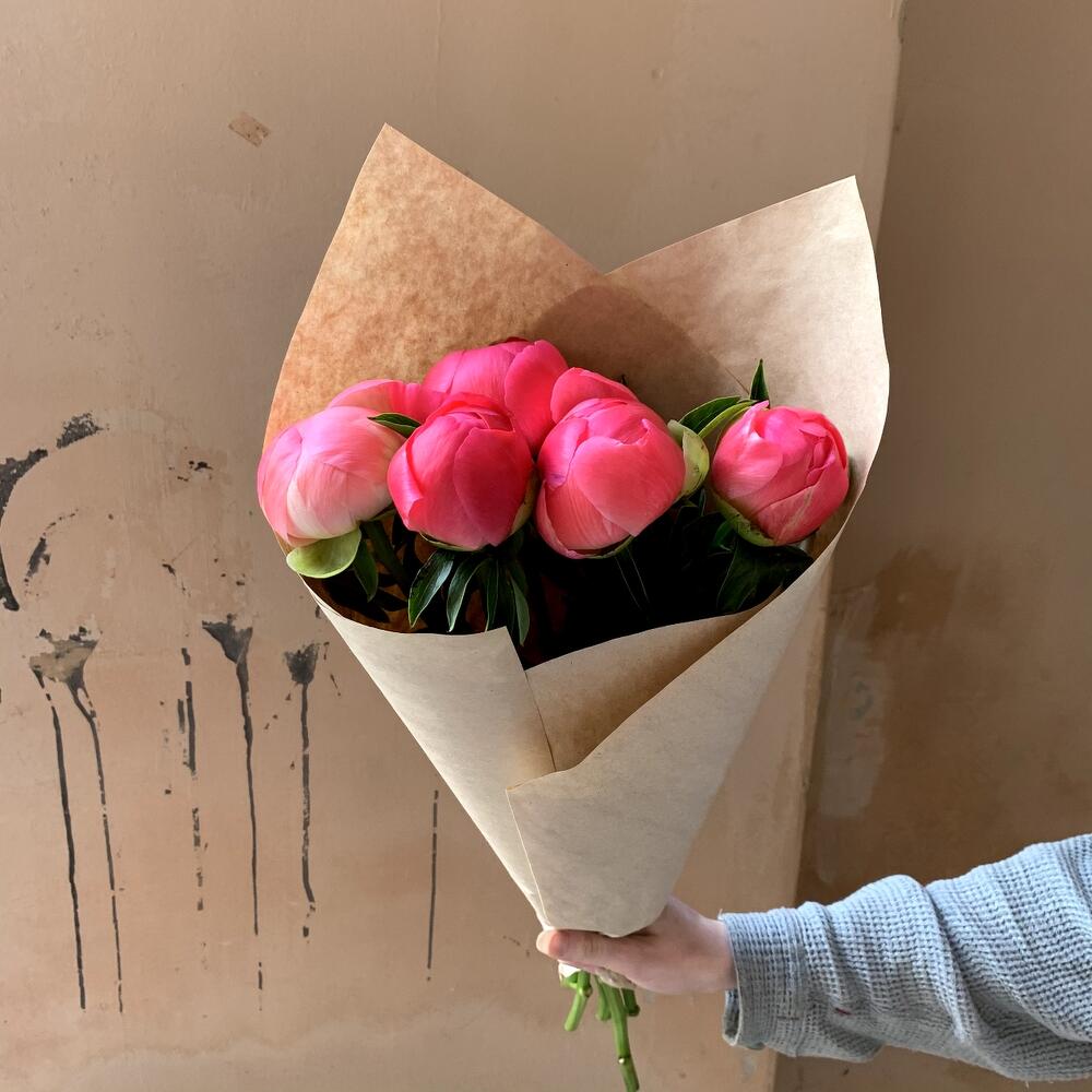 Коралловые пионы 7 шт в крафте