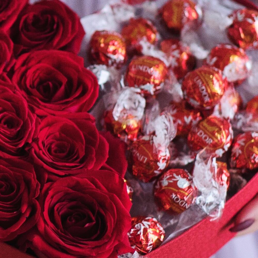 Коробка из 9 роз с конфетами