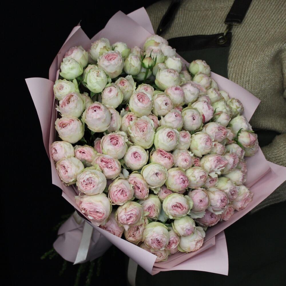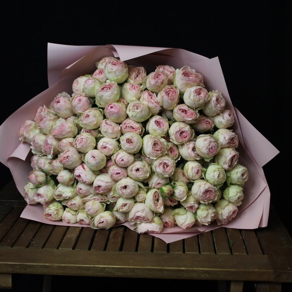 Большой моно букет из нежной кустовой розы